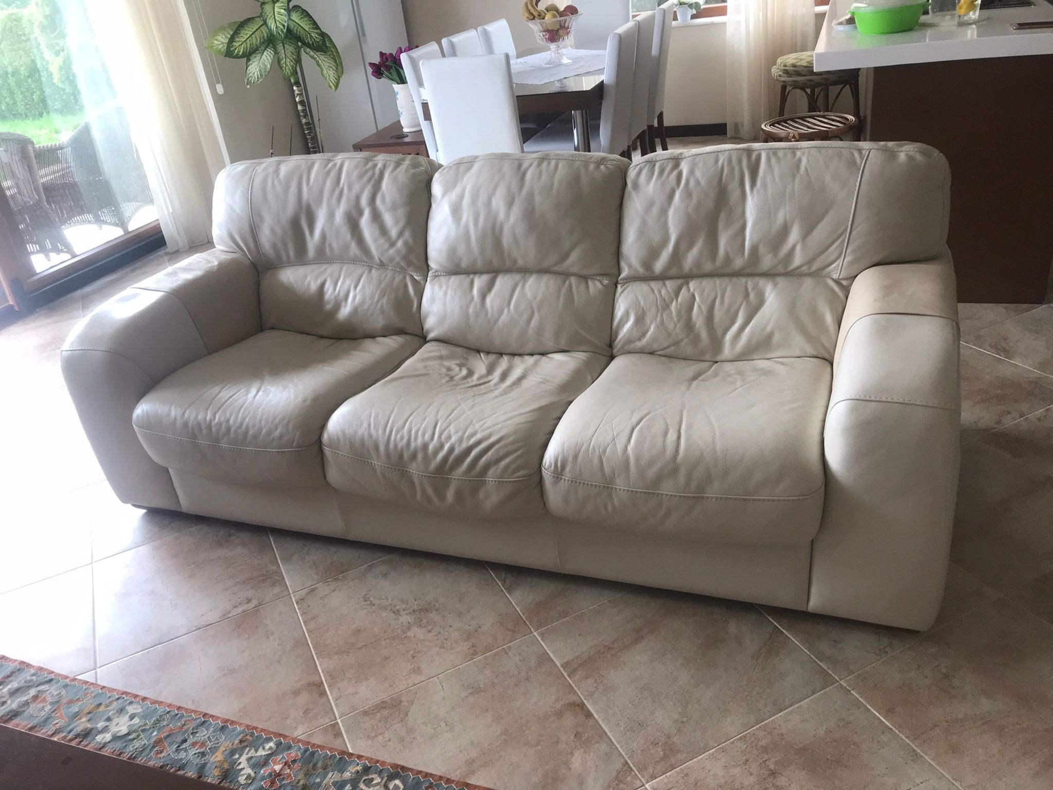 ikinci el beyaz deri oturma grubu bir üçlü ,bir ikili, iki tekli den oluşan oturma grubu trabzon ikinci el eşya ev-kur