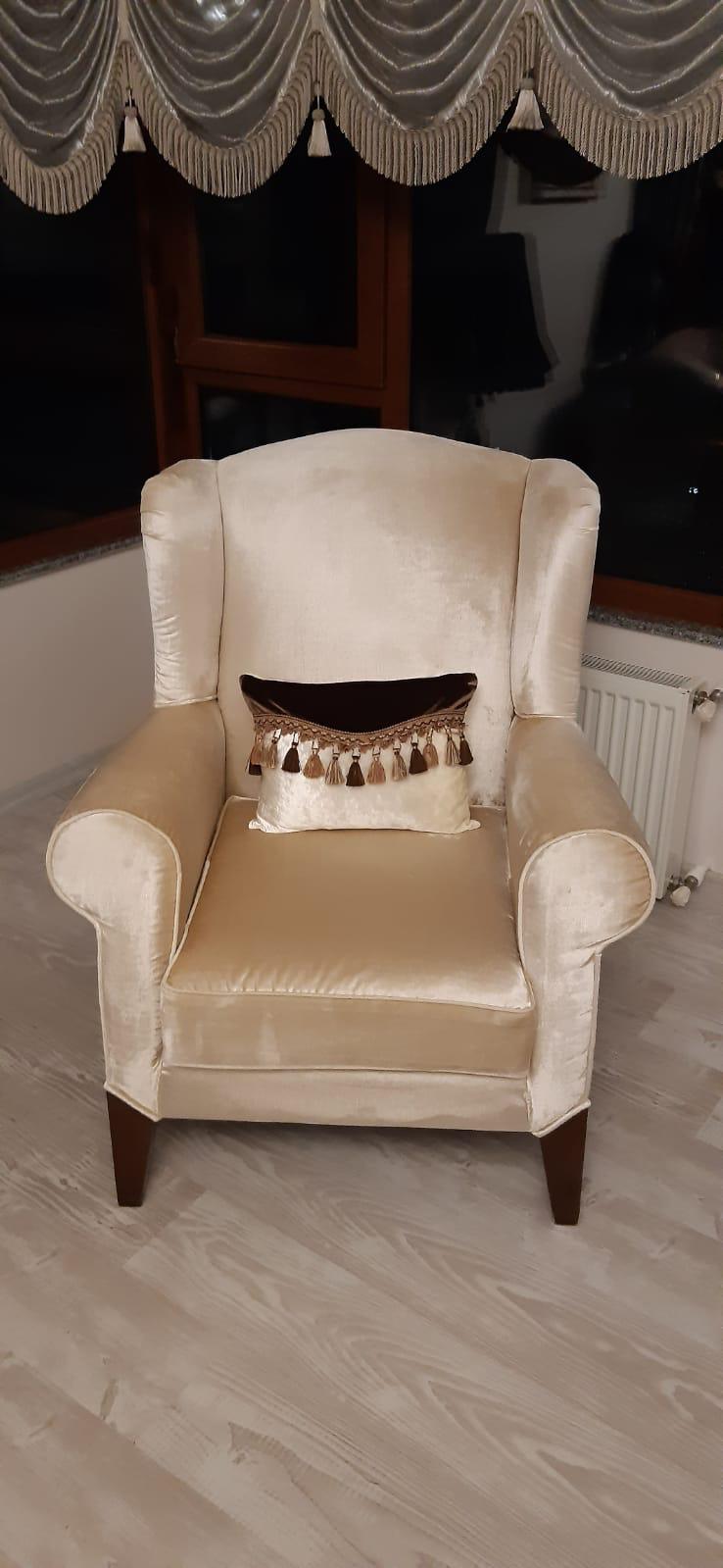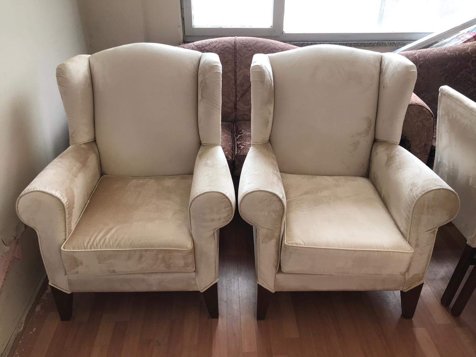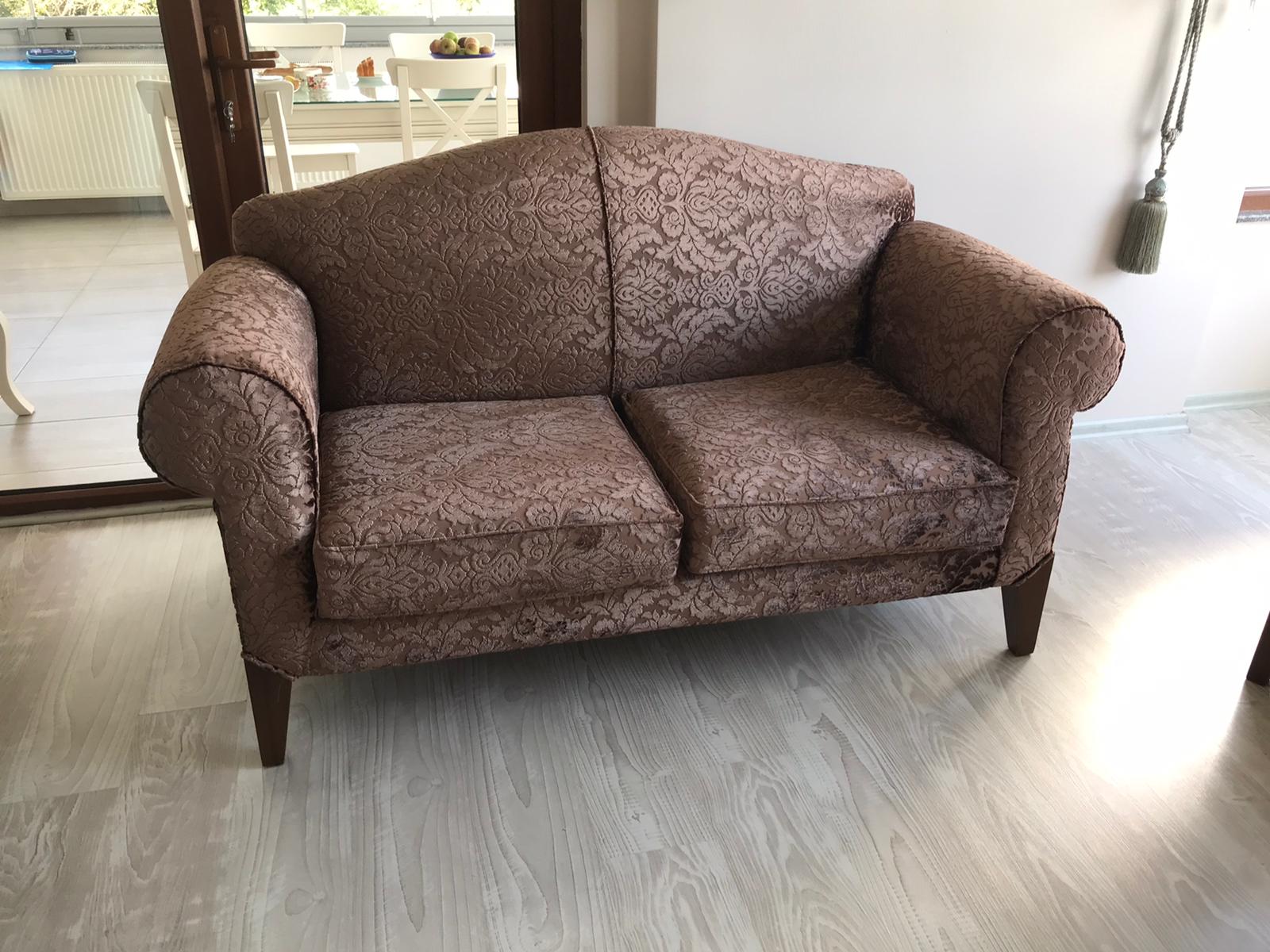 ikinci el klasik bir üçlü, bir ikili, iki tekli berjerli koltuk takımı kadife kumaşlı, lükens ayaklı evinizi şıklaştırır ve gösterişli görünüm sağlar ev-kur ikinci el eşya